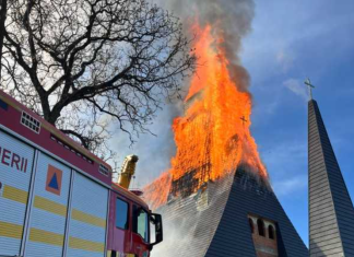 Incendiu puternic la biserica catolică din Șurdești, Maramureș