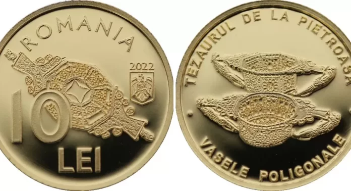 Banca Naţională a României va lansa, începând de astăzi, 19.12.2022, în circuitul numismatic o monedă din aur cu tema Tezaurul de la Pietroasa – Vasele Poligonale, potrivit unui comunicat al băncii centrale.