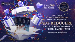 Organizatorii Wonder Family Fest, cel mai mare festival dedicat familiilor din România, anunță o promoție specială de Ziua Națională: bilete și abonamente cu 50% reducere pentru ediția din 2026, disponibile exclusiv pe durata lunii decembrie.