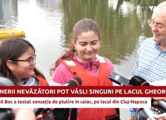 Nevăzătorii pot vâsli singuri pe lacul Gheorgheni din Cluj-Napoca, ghidați de...