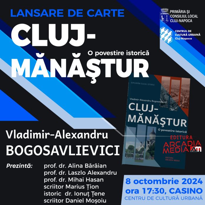 O nouă apariţie editorială: „Cluj-Mănăştur. O povestire istorică”, a profesorului Vladimir-Alexandru Bogosavlievici își va face prezența în universul literar. Prin această carte editura Arcadia Media şi cunoscutul profesor de istorie, continuă seria volumelor de autor „Explorăm Clujul istoric”. Cei interesați pot participa la lansarea oficială pe data de 8 octombrie 2024, de la ora 17:30, la Casino.