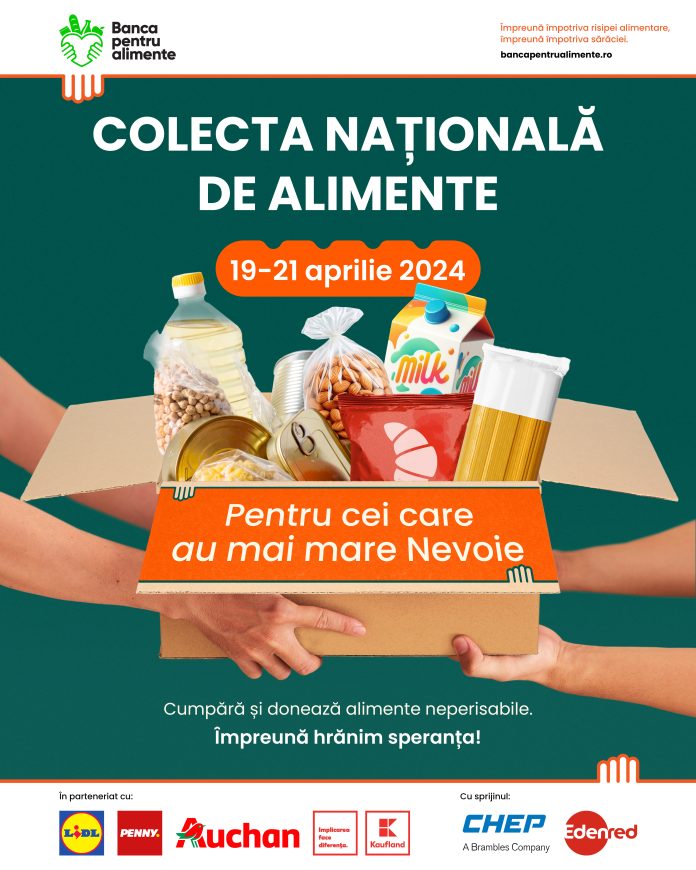 Federația Băncilor pentru Alimente din România (FBAR) anunță cea de-a 10-a ediție a Colectei Naționale de Alimente. Aceasta va avea loc în perioada 19-21 aprilie, în 828 de magazine din toată țara și se va desfășura sub sloganul „Împreună hrănim speranța”.