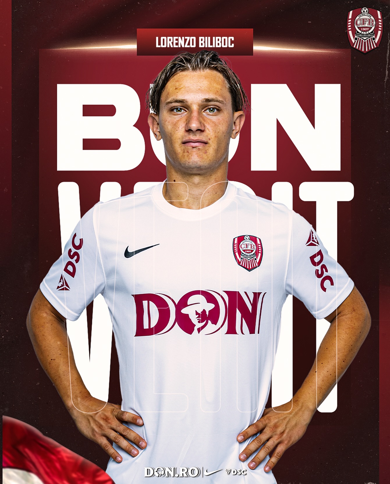 „Bun venit, Lorenzo Biliboc! CFR 1907 Cluj și Juventus Torino au ajuns la un acord pentru transferul tânărului jucător de bandă, Lorenzo Biliboc, la formația noastră!