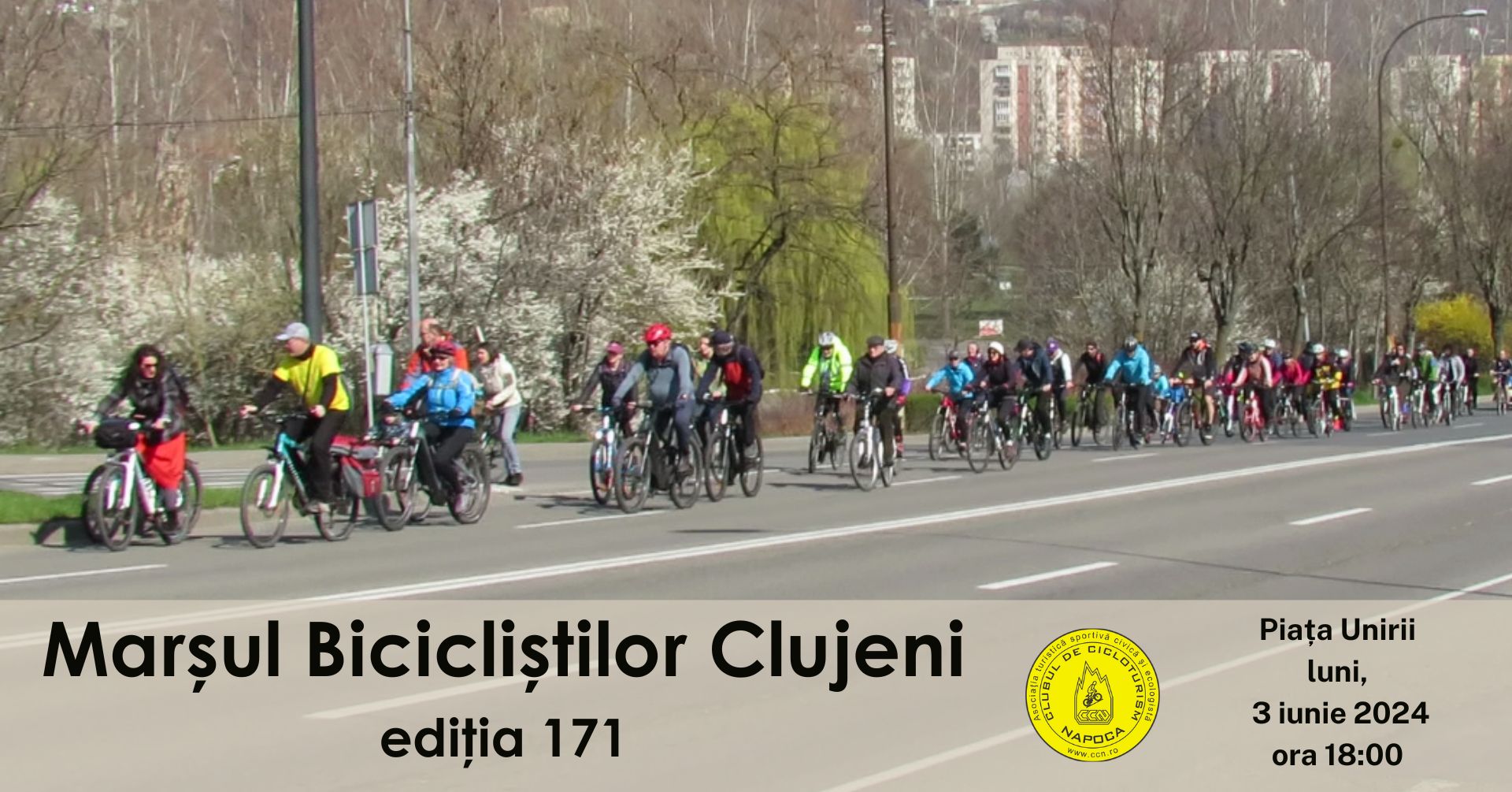 Clubul de Cicloturism Napoca (CCN) organizeaza, luni 3 iunie 2024, a 171-a