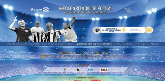 Cluj-Napoca devine, în luna mai, scena unui eveniment special în care sportul și solidaritatea se întâlnesc pentru o cauză nobilă. Pe 9 mai 2026, ora 15:00, Sala Sporturilor Horia Demian va găzdui un meci caritabil de excepție între Legendele Universității Cluj și reprezentanții Rotary District 2241. Un eveniment caritabil pentru comunitate Organizat sub sloganul „Mai … Continuă lectura Meci caritabil la Cluj-Napoca: Legendele „U” joacă pentru pacienții oncologici