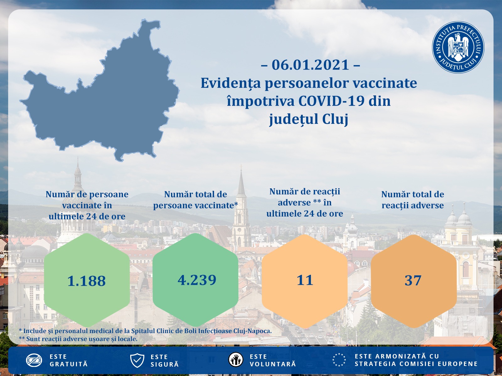 “Sunt reactii de tipul: durere la locul administrarii vaccinului, roseata etc. Daca vot fi cazuri cu reactii severe, vom oferi punctual detalii”, promite Prefectura Cluj.