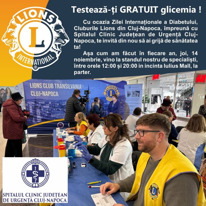 Cu ocazia Zilei Internaționale a Diabetului, Cluburile Lions din Cluj-Napoca, împreună cu Spitalul Clinic Județean de Urgență Cluj-Napoca derulează o campanie de screening pentru depistarea diabetului. Aceasta va avea loc în data de 14 noiembrie, în incinta Iulius Mall, la parter, între orele 12:00 și 20:00.