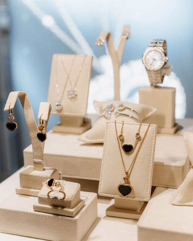 În zona dedicată creațiilor de bijuterie, vizitatorii vor admira colecții spectaculoase ale unor case internaționale recunoscute pentru stilul lor distinct și calitatea excepțională a pietrelor folosite, precum Messika, Pomellato, Roberto Coin, Fope, Baraka, Nanis și Pasquale Bruni. Fiecare piesă este însoțită de un canvas informativ pe șevalet, ce detaliază viziunea creativă, materialele folosite, simbolistica și tehnicile de manufactură specifice fiecărei case.