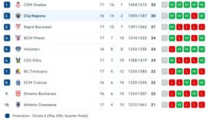 Astfel, în etapa decisivă, care va avea loc vineri, 7 aprilie, de la ora 18:00, în fața fanilor din BT Arena, clujenii vor fi nevoiți să câștige la diferență de cel puțin nouă puncte confruntarea cu echipa pe care au reușit să o învingă în marea finală a Cupei României, pentru a își asigura calificarea în fazele eliminatorii de pe primul loc al clasamentului. Situația completă a echipelor din faza superioară a campionatului este disponibilă mai jos.